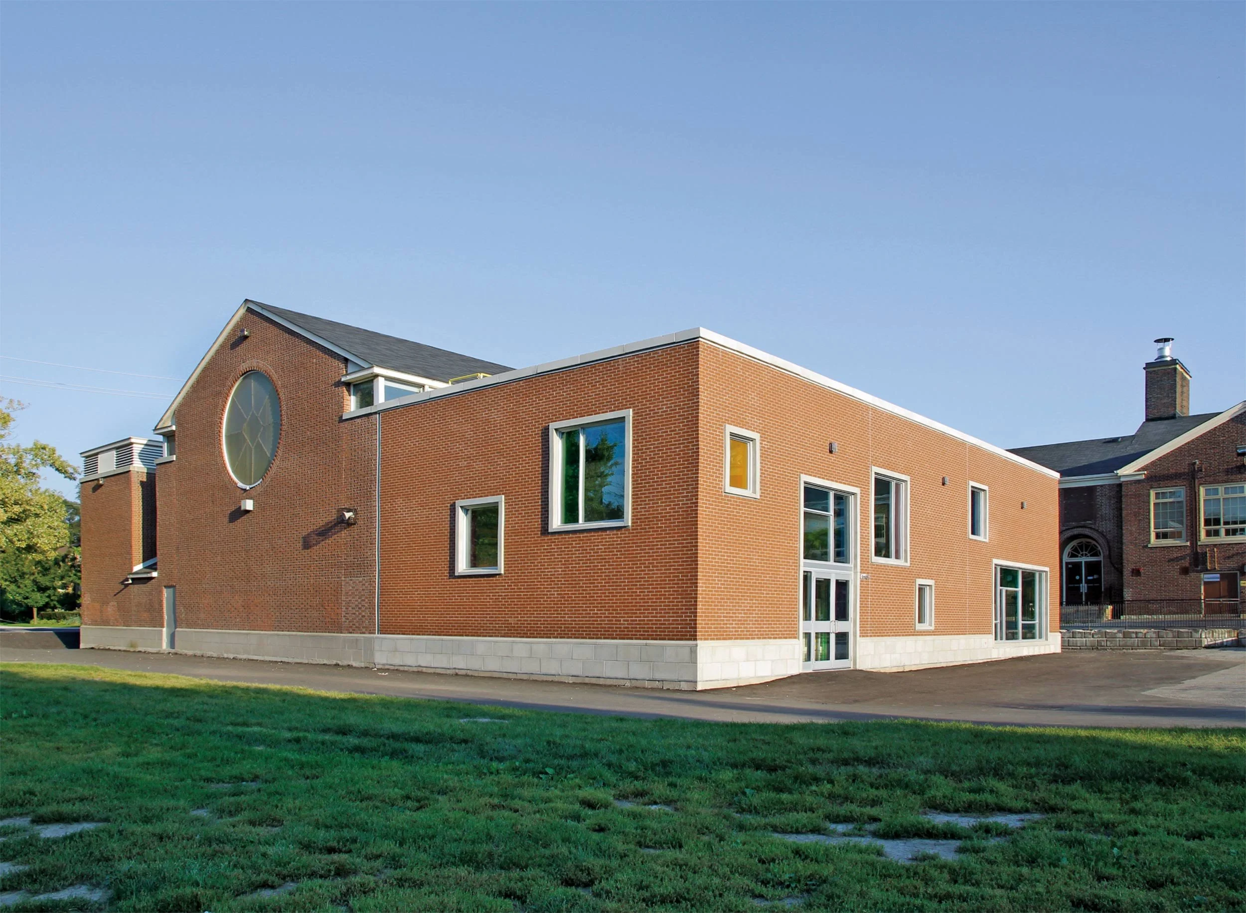 By completely removing the end wall of the existing gym, the addition will allow for the flexibility of larger assemblies, as well as more options for community use. A solid retractable partition and a separate entrance from the shared foyer will permit the multi-purpose room to be closed off from the gym, for use as a lunchroom, music room and other functions.